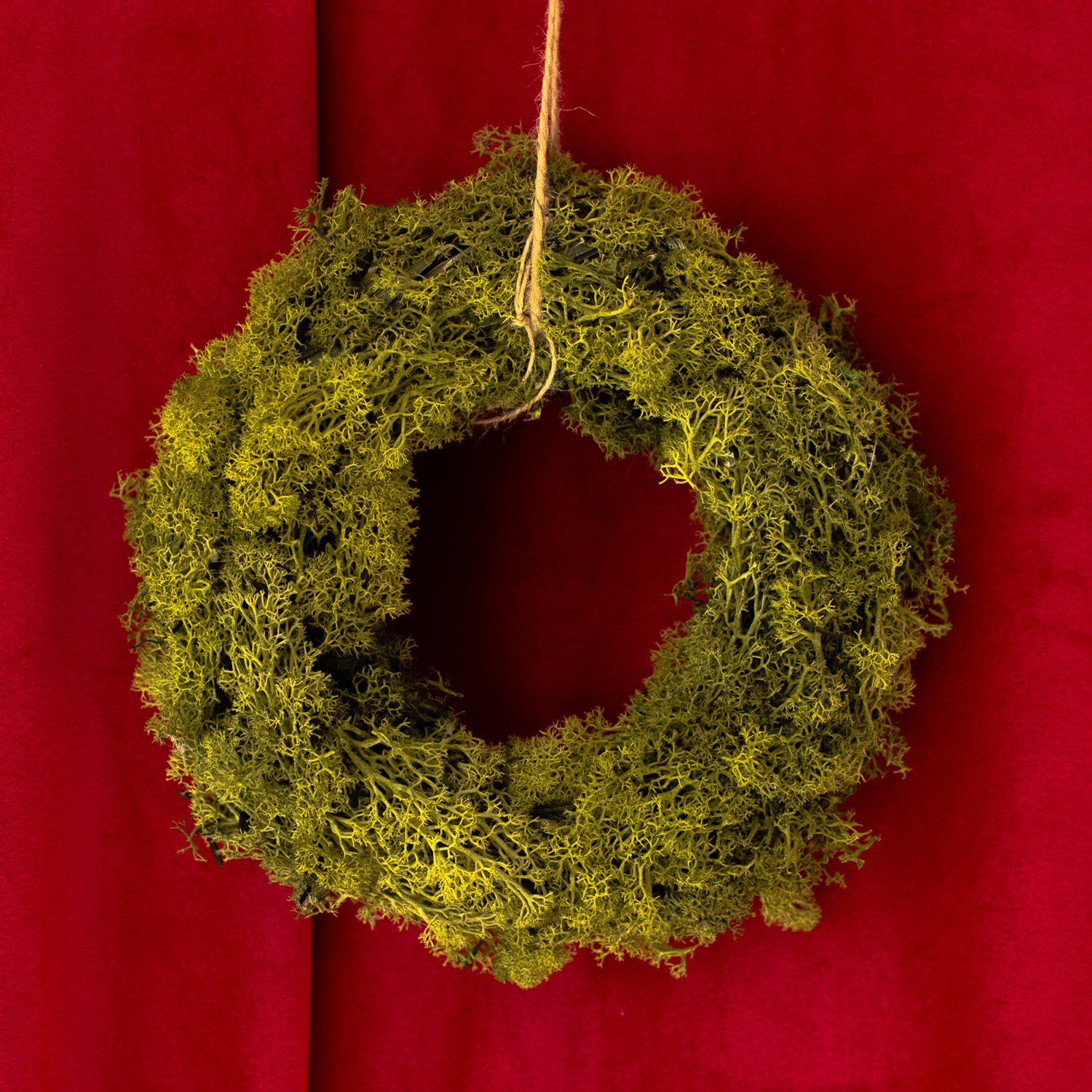 Wianek Moss bazuje na naturalnym, stabilizowanym mchu. Całość wykonana jest na sztywnym, słomianym stelażu. Kompozycja zawiera sznurek i przyssawkę do montażu na drzwiach.